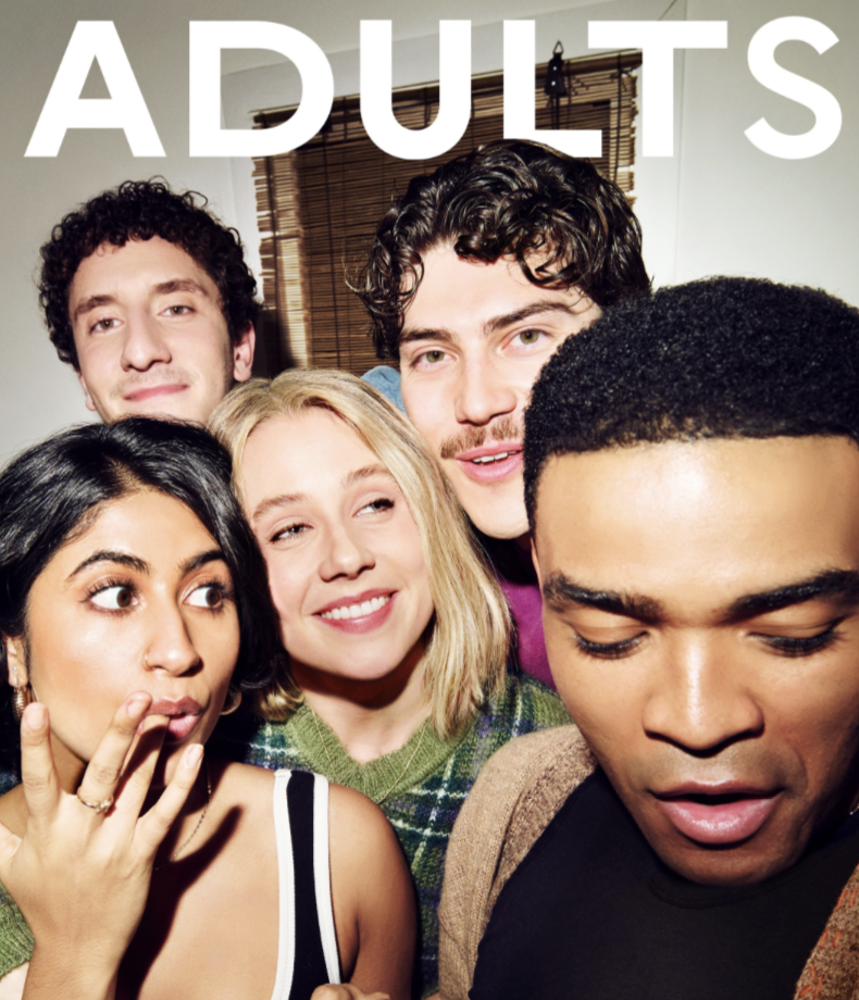 These are just some of the small details that add up to a larger incompetence in Adults (a title unspokenly meant to have quotation marks around it), the first “sophisticated” show to attempt distilling life in New York for Gen Zers into something “voice of a generation-y.” Created by Ben Kronengold and Rebecca Shaw, writing and romantic partners (recently engaged, which isn’t very Gen Z), some of those “small details” include trying to get a check from the bank to pay for a company called Peter’s Heaters to repair the boiler so that Samir (Malik Elassal) and the other three friends who have taken up residence at his parents’ house can start enjoying hot showers again.