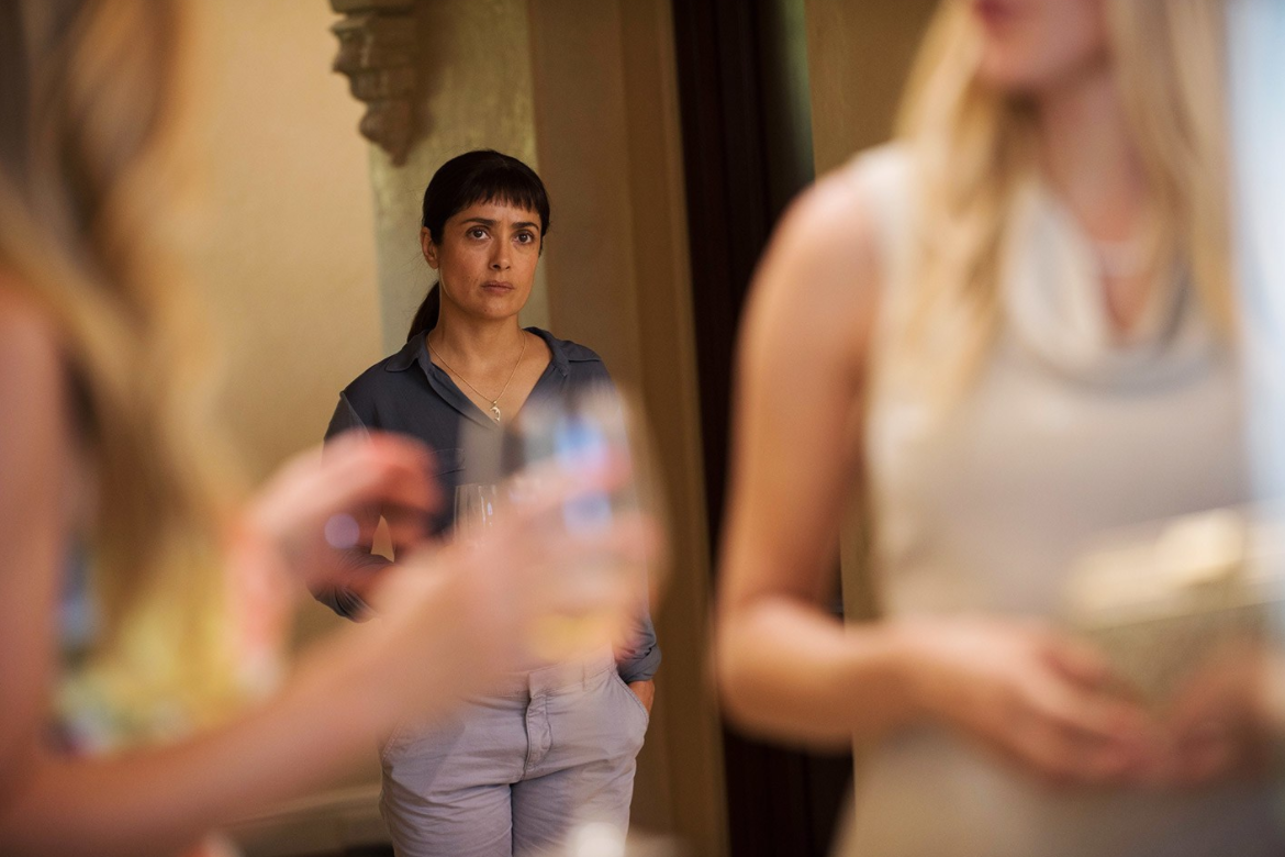 As we watch her go about her day, heading to a healing treatment center in Santa Monica, the aura of martyrdom and self-sacrifice that emanates from her very core recalls another character in the Arteta/White annals: Justine Last in The Good Girl. Though Justine is, of course, obviously more selfish and dissatisfied with her work, the disappointment and sadness that radiates from both is something only Arteta and White could team up to create. And, like Jennifer Aniston playing Justine, Hayek is getting plenty of buzz about her controlled, staid performance.