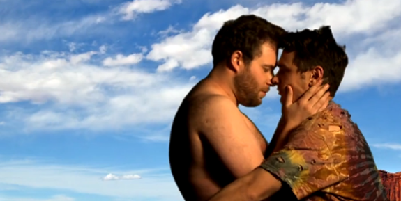 Seth Rogen and James Franco have long been playing a cat and mouse game with the media with their elaborate videos and photo shoots “poking” fun at their gayness. The latest in the series of “jokes” comes in the form of Naked and Afraid, a Discovery Channel show about a “duo left high and dry with no food, no water…and no clothes. They must survive on their own for a full twenty-one days, with nothing but one personal item each and the knowledge that the only prize is their pride and sense of accomplishment.” So naturally, Rogen and Franco would want to be a part of it. Totally straight for each other