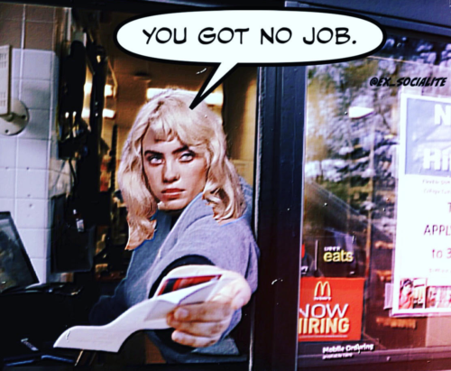 Despite the increasingly worn-down veneer of what “work” is supposed to “mean” in a post-COVID world, Billie Eilish, that ever-increasingly normie Gen Zer/goy toy, has taken it upon herself to revitalize a certain trope about what it is to be a “loser”: not having a job. Or at least not some sort of soul-sucking enterprise that pays enough to participate in basic social scenarios (like “coupling”). This discrimination, of course, is directed at her no-good ex. And while it might be a classic go-to insult—particularly for women against men (when they’re not using the small dick line)—perfected by the likes of TLC via “No Scrubs,” it seems as though, by now, it should come across as a rather narrow-minded disparagement. One that has no place amidst any generation calling itself a part of the future as opposed to being hopelessly tethered to the past.