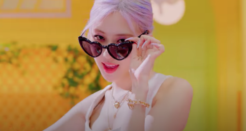 Complete with the childlike sets of the average “Instagram experience” (you know, like the Museum of Ice Cream pop-up that was so endlessly sought after prior to the pandemic problems presented by crowds), the music video opens on the girls of Blackpink–Jisoo, Jennie, Rosé and Lisa–going down a yellow slide as Selena Gomez rolls up in an ice cream truck flipping her hair in a sailor hat. For good product promotion cachet, the limited edition cartons of their Serendipity-sanctioned ice cream are on full display in the window. Billy Corgan in the “Today” video this is not. But, at the very least, Gomez doesn’t make for a creepy or pedo-like ice cream vendor as Blackpink rides around on their bikes in the cul-de-sac of an acid trip version of what suburbia looked like in the 1950s. And, of course, what Lolita reference is complete without the use of heart-shaped sunglasses, featured prominently during this bike riding scene… complete with training wheels to accent the notion of prepubescent glory.