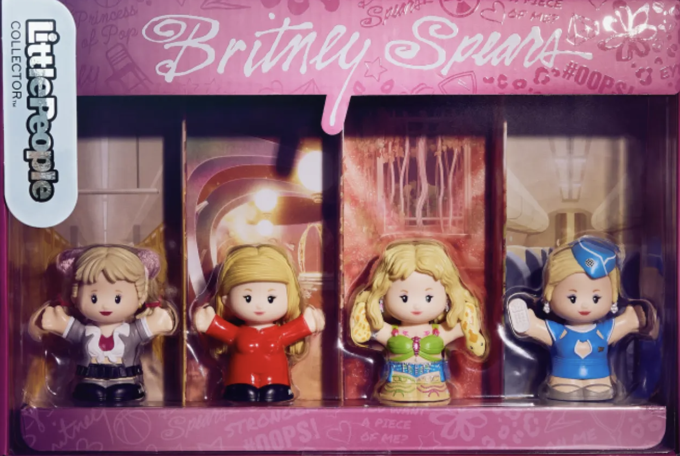 All of this is to say that, after everything Spears endured in terms of the venomous rhetoric about what she chose to wear (or not wear) during the first eight-ish years of her career, some of those formerly salacious looks are now being deemed perfectly suitable to be turned into Fisher-Price Little People. Specifically, Britney Spears is becoming part of the Little People Collector editions that have also extended to the likes of The Beatles and E.T. Obviously, compared to those two, Spears’ Little People renderings are patently more “controversial.” Except that we’ve now entered an epoch where there is really no such thing. In fact, it’s more controversial to be conservative in the present climate than it is to be “liberal” (mind you, if you tear the mask off a liberal, you’re likely to find a conservative). Thus, the ease with which Fisher-Price opted to make miniature versions of Spears in some of her most “notorious” looks is but par for the blasé-about-sexuality course.