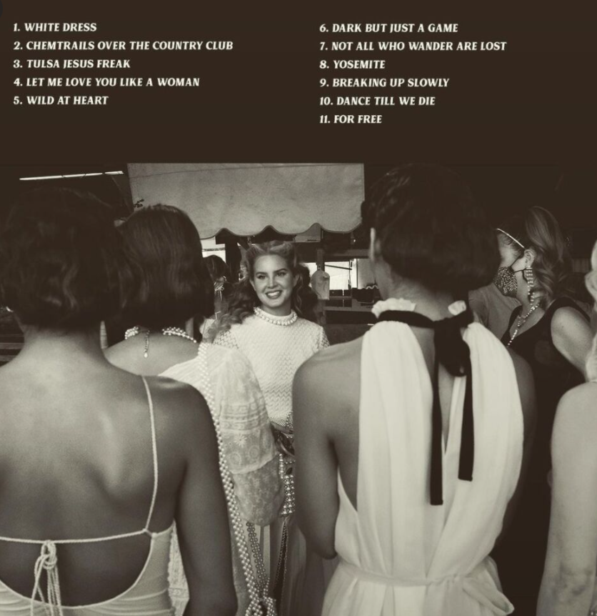 “White Dress” is by no means a “friendly” start to a record. In fact, it’s even more anti-radio airplay than a track like “Norman Fucking Rockwell,” the opener to the 2019 record of the same name. A lengthy five minutes and thirty-three seconds, “White Dress” is a lament. A look back at those salad days when all Lizzy Grant wanted was to be famous, never comprehending that it would have such unpleasant ramifications (like being called out for her bouts with failing to check her privilege and then lashing out at the media and internet, only to further stoke the flames).