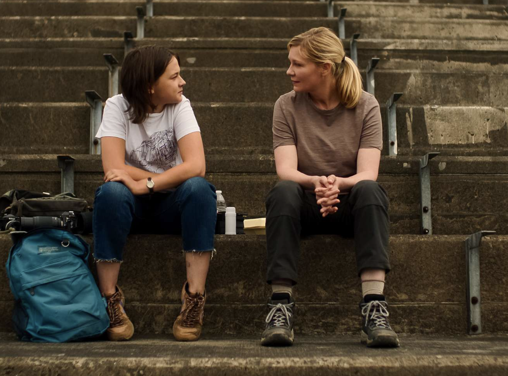 At the center of the “war photojournalism plot” is Lee Smith (Kirsten Dunst), a wizened, ultra-jaded war photographer that’s been traveling the country with her colleague, Joel (Wagner Moura), to cover the calamity. At the outset of the film, the two are in New York City, where Lee initially encounters the twenty-something woman she’ll end up grudgingly (at first) mentoring. Jessie Cullen (Cailee Spaeny, continuing to come up in the world since starring in Priscilla) approaches Lee in Brooklyn (a milieu that’s no stranger to the carnage of Civil War fighting) to gush about being a fan of her work.