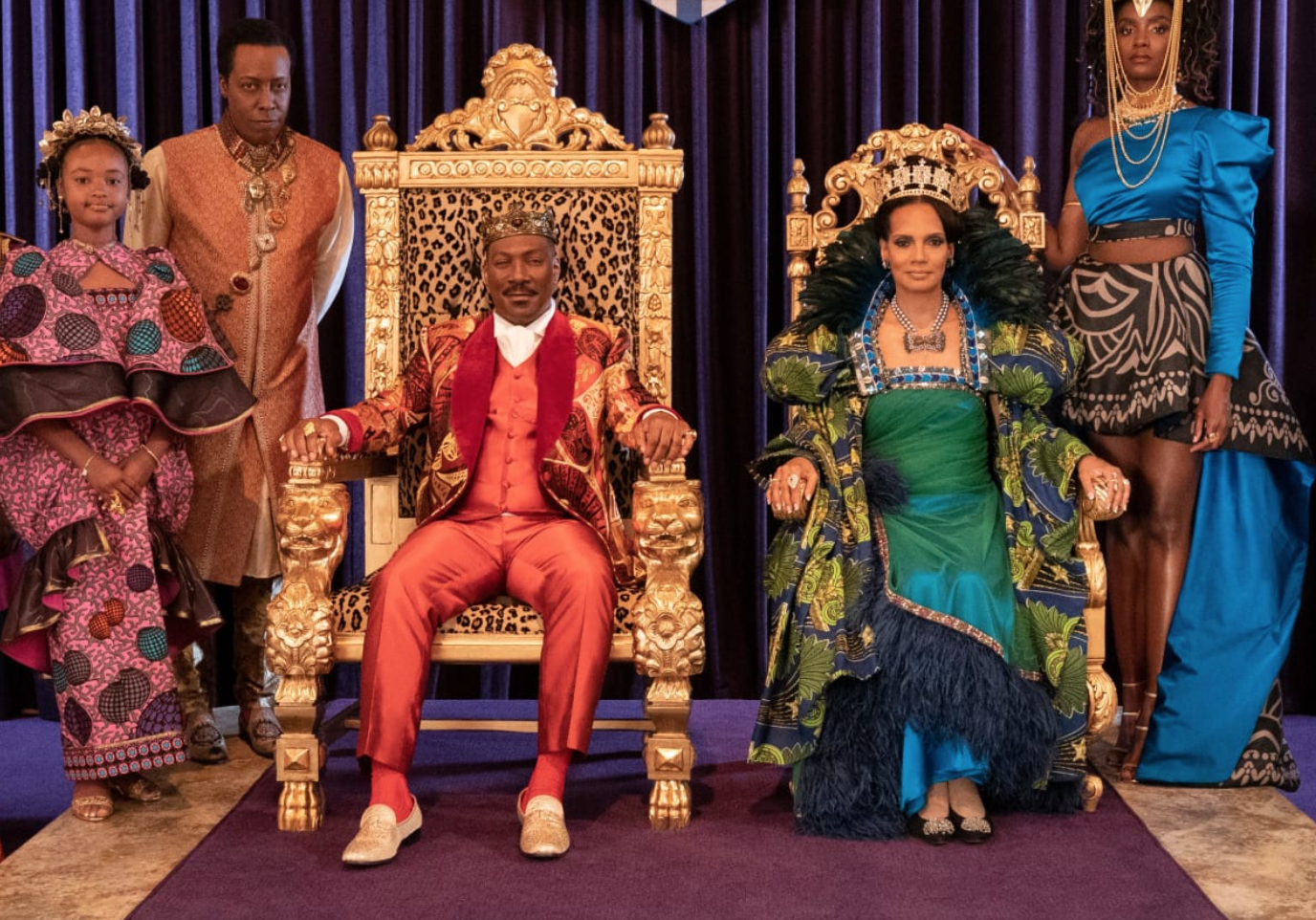 But it isn’t just race Coming 2 America wants to cursorily tackle. Even though the entire movie is centered on a father-son relationship, the narrative would also like to fancy itself a feminist declaration. After all, Akeem now has three daughters, Princess Meeka Joffer (KiKi Layne), Princess Omma Joffer (Bella Murphy) and Princess Tinashe Joffer (Akiley Love). It is his eldest who has been training her entire life for the role of “king” (kind of like Queen Elizabeth II), yet Akeem, like his father, has fallen into the trap of upholding “tradition” for no good reason. As Jaffe Joffer (James Earl Jones) once asserted of Akeem’s desired union with Lisa after she rejects him, “They still could not marry [even if she said yes]. It is against tradition.” Akeem’s mother, Queen Aoleon (Madge Sinclair, RIP), then denounces her husband with the retort, “Well it is a stupid tradition.” Jaffe shrugs, “Who am I to change it?” She points out, “I thought you were the king.”