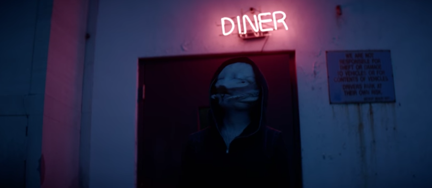 Directed by Ninja himself, the video commences with an ominous fluttering firefly meets caterpillar that seems to pay faint tribute to those sort of sinister openings to 80s teen horror movies. And yeah, life in America right now is kind of like an 80s teen horror movie minus the part where it’s all “hahaha” jovial and there’s like a cool eight-bit soundtrack making it all feel a little less scary. That said, Yolandi Visser, who already looks like an alien to begin with, appears as the titular extraterrestrial maligned by all she comes into contact with (despite largely keeping to herself among the abandoned and graffiti’d warehouses of Detroit). Lamenting, “I am a alien/No matter how hard I try I don’t fit in/Always all on my own, sad and lonely/All I want is for someone to play with me,” our alien is denied service at a speakeasy-looking diner where Ninja makes the rules in his American flag hat and wife beater. Walking in as discreetly as possible–hoodie over head, I HATE U backpack in tow–our alien tries to get by without incident, but the second her “nature” is discovered, Ninja thus points to the sign “No Aliens Allowed.”