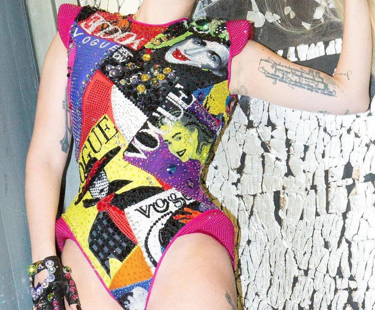 Enter Donatella Versace to settle the score in outfitting Gaga with a custom leotard featuring a barrage of Vogue covers for her Milan performance of the Joanne World Tour. Knowing full well that Lady G would trust her implicitly to dress her in whatever she so chose (the woman wrote a song about her for fuck’s sake), it feels as though the Italian mogul was possessed by a delicious sense of irony in selecting the May 1989 Vogue cover featuring a pool-drenched Madonna as its subject. Sure, neutral Swiss types can try to chalk it up to happenstance all they want, but I think we know Donatella is meticulous in her design selections and put plenty of thought into the covers she selected for the garment.
