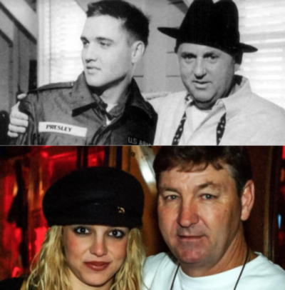 Worst of all, Brit’s still fairly-fresh ex, Justin Timberlake, was the host—and the winner of many awards that evening. A salt-in-wound factor that the Lifetime movie about Spears—Britney Ever After—was sure to emphasize. With no shortage of criticism the following day, ranging from calling her “listless” to “lumbering” to “dazed,” Britney had become a laughingstock. In essence, this was no longer the perfectionist Britney the world had become accustomed to. No, this was Brit in her washed-up Elvis phase for sure. In fact, there was even an article released in the aftermath called, “Is Britney the New Elvis?” Comparing their “bloated” appearances (Britney literally looked like a normal person) and respective fondness for junk food and drug abuse (Britney’s was well-known by this time, and even being spotted with Provigil in her purse was enough to set tongues wagging), one thing that was still too early to document was the parallel between Colonel Tom Parker and Jamie Spears. The former being a “father figure” to Elvis (despite his own dad, Vernon, still being alive) and the latter being Britney’s “real” dad. A little too real, in terms of abusiveness.