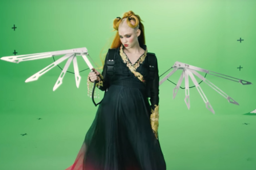 Although Grimes can semi-bill this experiment as an act of artistic altruism and concern for people getting bored in quarantine, it is, of course, also because her present state of pregnancy makes it a risk for her to perform as dynamically as usual (it’s kind of like how Madonna relied on an animated action segment for the “Music” video in 2000 while she was pregnant with her second son, Rocco). That said, her largely stationary stance throughout the unfilled narrative is helpful to those who might be novices in the editing process. Sharing the raw files via WeTransfer and putting artistic power in the hands of the people, Grimes could also very well be giving the average person too much credit as many will inevitably tinker with the video in such a way as to make it look, let’s say, “inappropriate.”