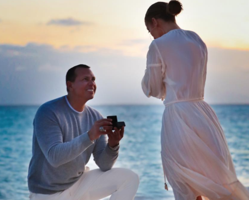 J. Lo and A. Rod: what two celebrities with perfectly suited to one another abbreviated names could belong together more? No strangers to cultivating the perfect manufactured vacation (even if it means falsely perpetuating a certain idea of Italy), the two headed to the Bahamas for the most recent break from being rich, where Rodriguez saw fit to propose on Saturday, March 11th. But rather than simply share the intimate moment alone, he felt it necessary (perhaps highly attuned to the vanity of your average pop star) to bring into the equation a professional “on location” photographer to document Lopez’s reactions. Because when you shell out slightly over a million dollars for a ring, of course you want to see the object of your affection’s expression of elation further corroborating that “true romance” is ninety percent based on ability to deliver on material goods.