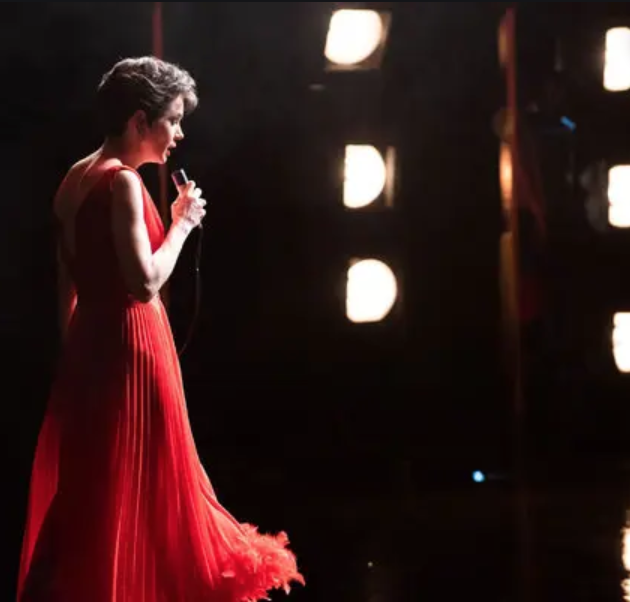 Assigned an assistant–but really just another handler–named Rosalyn (Jessie Buckley), Judy’s enthusiasm for being forced to “earn again” (despite none of the money ever making a dent in her bottomless pit of debt) is non-present. The only glimmer in her dark existence is a loyal gay couple who shows up to see her perform every night. Taking liberties with history, Judy’s once assured status as a gay icon (which has since waned in the twenty-first century thanks to how little gays seem to appreciate tragedy now that it’s not a struggle or source of shame to bang a fellow man) and the dynamic she has with that demographic is highlighted through the lens of this rapport. Touched by their devotion, she suggests they get dinner together. Alas, after midnight in London, nothing is open, and she ends up back in their apartment where she is presented with something that’s supposed to be an omelet. An apologetic Dan (Andy Nyman) plays her a song on his piano after explaining to her that he and his partner had missed her show back in ‘64 because the latter had been forced to serve time in jail for being homosexual. An empathetic Judy consoles him that all they want to do in this life is tear anyone down who is different. And as she sings “Get Happy” to him, he starts to cry. It is this and a later moment of tenderness between the two involving singing that speaks to just how much gay men understood and supported her through the tumultuousness of her career. And life. One that was never much of any fun despite her contribution to pop culture iconography.