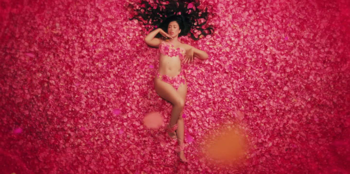 And while she’s wishing that wellness, she perhaps wants to remind her ex of what he’s missing as she reenacts the aforementioned overhead shot in American Beauty with all of her “strategic parts” covered in petals. Adding to the tradition of flower imagery in music (as Miley recently has), Uchis brings a new high to the “rose canon” of songs, among such gems as Aretha Franklin’s “A Rose Is Still A Rose” and, yes, Poison’s “Every Rose Has Its Thorn”—with the eponymous flower in question providing no shortage of inspiration for analogies related to love and growth (and, needless to say, sex).
