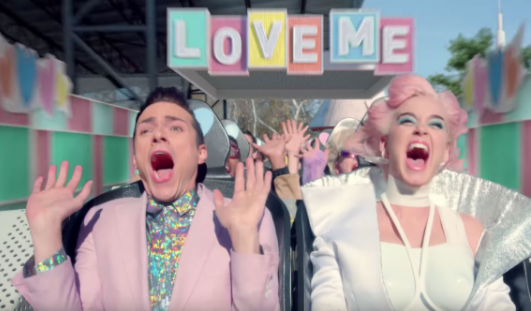 Directed by Mathew Cullen (who also did Perry’s “Dark Horse” video), the saturated-in-color aesthetic is in keeping with Perry’s usual Teenage Dream tones, however, this time, it manages to fit in neatly with her commitment to “purposeful pop.” For instance, take a ride on the American Dream Drop to get a brief taste of what was most important in the United States in the 1950s: buying a home (or rather, buying a mortgage to a home) and getting married. Or, if that’s not your cup of tea, you can also ride the Love Me roller coaster or take a drink of some Molotov-like liquid at the Inferno H20. Better yet, why not ride the hamster wheel for humans? You’re already doing it metaphorically anyway.