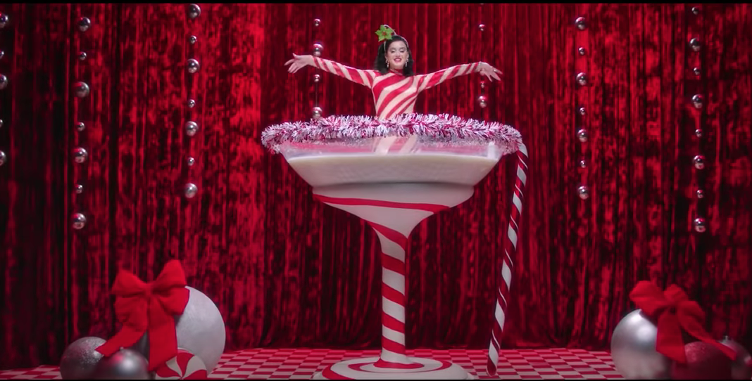 That’s certainly what it seems like when she coyly sings, “I don’t need anything/Take back all the Cartier, and the Tiffany’s and the Chanel/Well, can I keep that Chanel? Please?” All after buttering her fat Santa up with an image we’ll never be able to unsee in the form of his portly body being massaged by reindeer hoofs. To encourage his festive spirit, which seems to have waned over the course of being responsible for holiday cheer masked as the mass promotion of materialism, Perry stylizes herself in something resembling her One of the Boys/Teenage Dream-era persona as she does a burlesque-inspired act in a giant martini glass filled with eggnog. No, it doesn’t feel like she relishes decadence during the holidays at all.