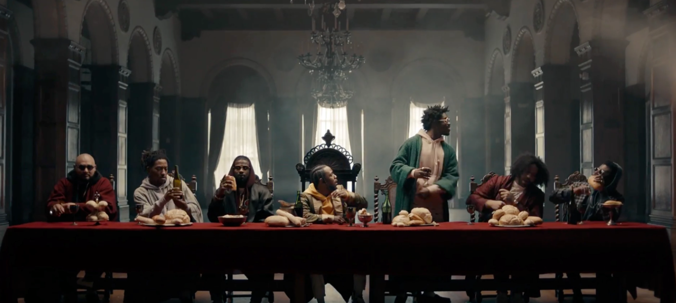 In the meantime, the west coast rapper has left us to ponder the layered meanings of his newest video, the verbal message of which touts, “I’m the realest nigga, after all/bitch, be humble,” all while he dons pope garb, emulates Christ at the table of The Last Supper and is the only one to stand out amid crowds of the men who surround him. But then, this contrast is only meant to serve as a reminder to those in his peer group (the likes of Drake and Big Sean whom he already threw shade at in “The Heart Part 4”) that while they’re all trying to brag about their paychecks, women and superiority, they really ought to just sit the fuck down and be humble.