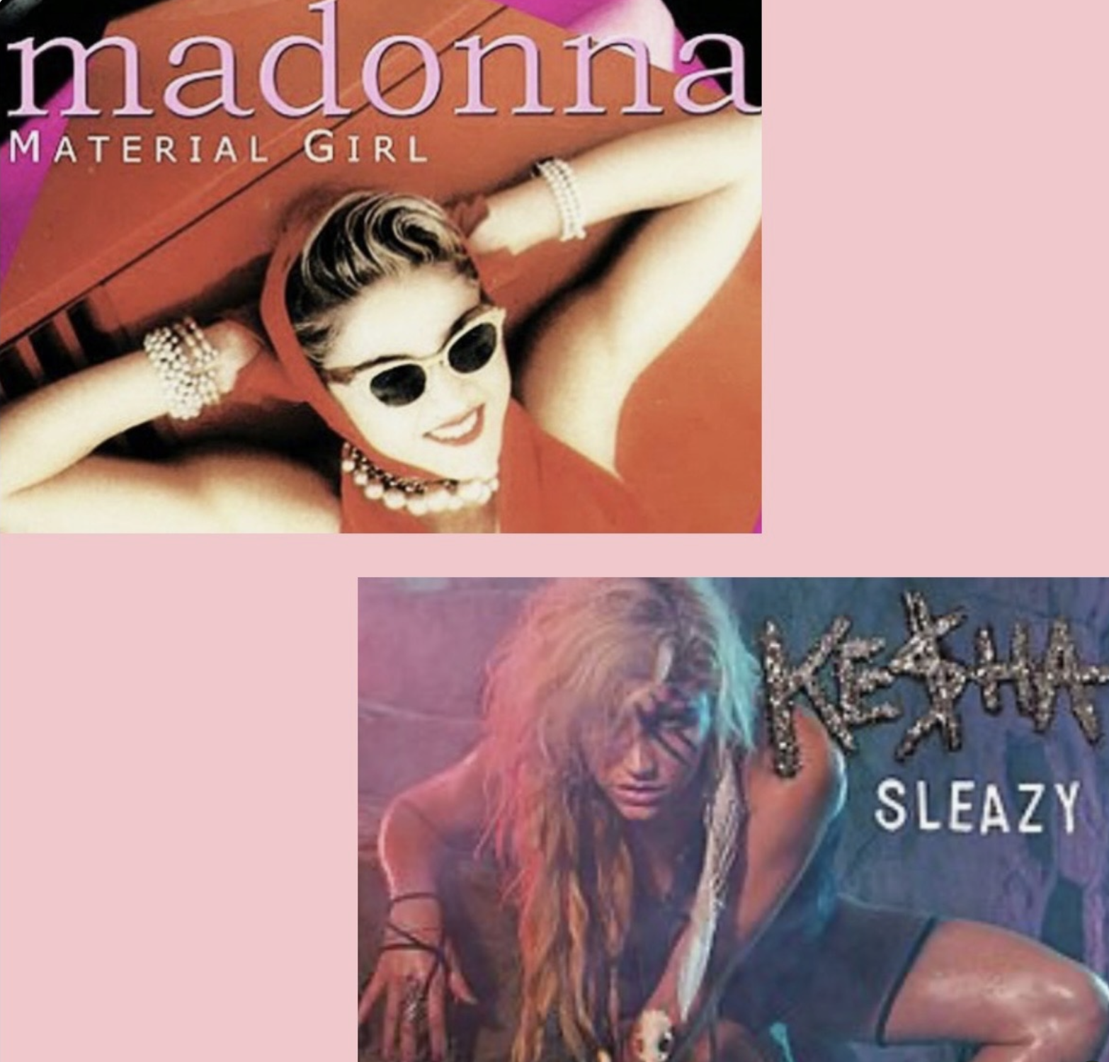 The same, too, could be said of Kesha’s more over-the-top wordplay on “Sleazy,” particularly when she sing-raps, “Rat-a-tat-tat on your dum-dum drum/The beat’s so fat, gonna make me cum (um-um-um)…/Over to your place.” However, if she does decide to, er, come, it isn’t going to be because the guy in question is rich. As she’s sure to underscore that with the lines, “You can’t imagine the immensity/Of the fuck I’m not giving/About your money and manservant/At the mansion you live in/And I don’t wanna go places/Where all my ladies can’t get in/Just grab a bottle, some boys/And let’s take it back to my basement and get sleazy/Sick of all your lines, so cheesy/Sorry, daddy, but I’m not that easy.” Madonna’s sentiments exactly. That is, if the premise of the “Material Girl” video is anything to go by (again, not the lyrics). In it, Madonna is described at the outset as “the biggest star in the universe, right now, as we speak.” As such, she’s managed to attract all manner of hangers-on and would-be suitors, expressing discontent with all of them at the beginning of the video when she tells a friend over the phone as she looks disinterestedly at a diamond necklace, “Yeah, he’s still after me, he just gave me a necklace. [pause] I don’t know, I think it’s real diamonds. [pause] Yeah, he thinks he can impress me by giving me expensive gifts. It’s nice, though. You want it?”