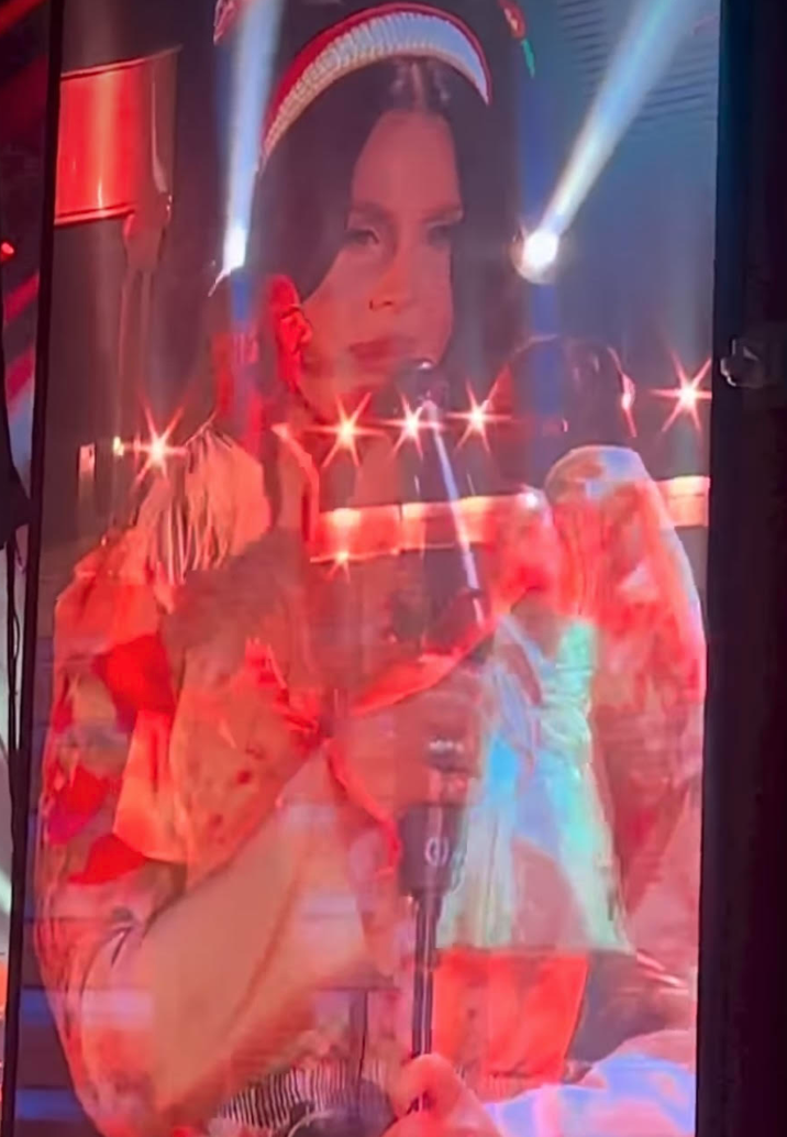 Although Del Rey might have done that for someone like Sean Larkin, it didn’t stop him from cheating on her in one of the worst ways possible (as she very publicly confirmed at a July 9th Hyde Park performance). In addition, it’s rather poignant that Larkin is the one who seemed to pivot Del Rey toward the Midwest thanks to his residence in Tulsa, Oklahoma (where she “just so happened” to place the only billboard to promote Did You Know That There’s A Tunnel Under Ocean Blvd, remarking of the decision, “It’s personal”). Nonetheless, she seems to still be of the “Let Me Love You Like A Woman” belief that all women should be gentle and understanding toward the men who “allow” them to be a mostly “full-time gal” (when he’s not out with his part-time, of course). To heighten the already heteronormative association “Stand By Your Man” has, Del Rey punctuated her performance with a man and a woman slow dancing in “classical” fashion (which can really just mean no “TikTok dancing” at this point) while she sang with her hair up “real big, beauty queen style” at the Walmart AMP (Arkansas Music Pavilion) without so much as a hint of tongue-in-cheekness. Not even when it came to being in Rogers, Arkansas in the first place. For that’s, at this juncture, merely a matter of staying “on-brand” (especially after delightedly “slumming it” as a Waffle House “waitress” [Lana’s word, not modern times’] in Florence, Alabama).