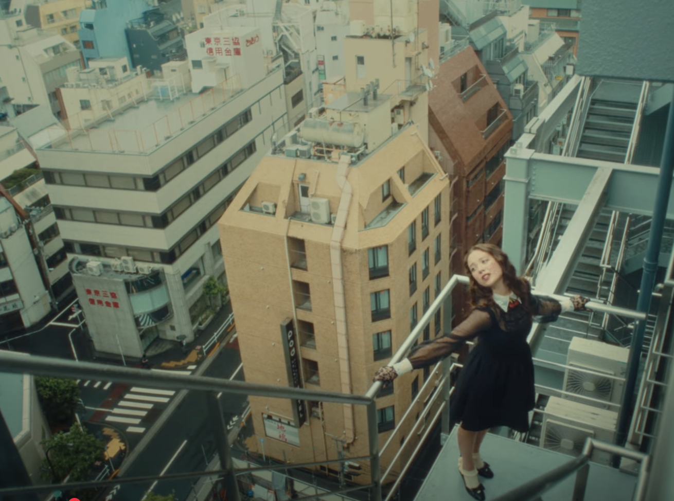 As for the mushy, love-gushing lyrical content itself, there can be no denying its muse is Charlie Christie, Laufey’s boyfriend and a senior VP of A&R for Interscope Records (something about this detail smacking of Lorde’s relationship with Justin Warren, an American promotions director at Universal Music in New Zealand—granted, Christie seems much more age-appropriate). To play up the romantic whimsy of Laufey’s verbal sentiments is the fanciful bossa nova beat, one that’s complemented by a series of claps at the beginning of the song. Claps that Laufey gamely pantomimes during the opening scenes, which immediately establish the setting as Tokyo. This because her first verse is, “This skyscraper’s causing vertigo/The countdown begins in Tokyo/Twenty-seven days alone/Means twenty million ways to cope without you.”