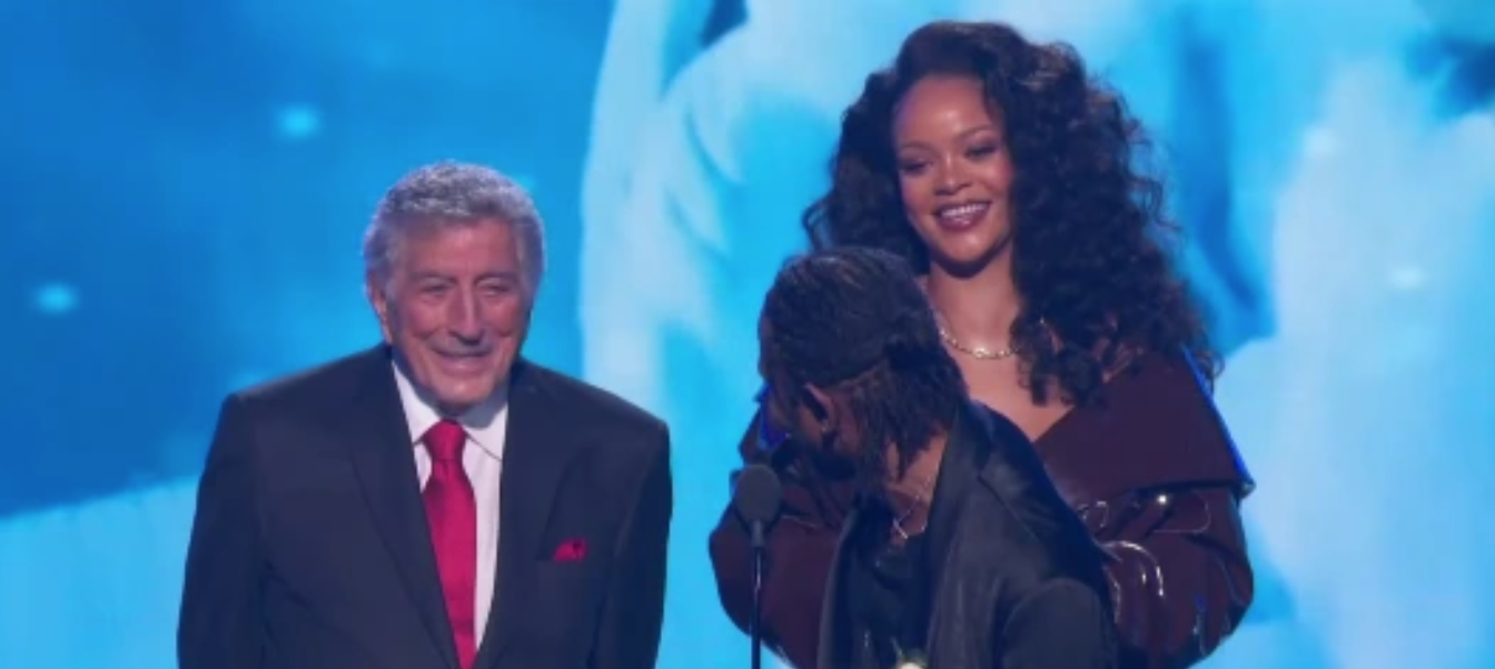 But apparently the wrathful youth wasn’t having Tony Bennett’s literally firm stance on the stage after the announcement of Kendrick Lamar and Rihanna winning the award for Best Rap/Sung Performance for “LOYALTY.” Winning out against Jay-Z like so many other rap artists of the night, Lamar and Rihanna approached the stage to accept the award together. What follows is this: Rihanna affectionately hugs Bennett and then willingly cedes the spotlight to Lamar, essentially “placing” Bennett back in his original spot. Whether Rihanna was just trying to “be humble” is at the viewer’s discretion, but please, for the love of Italy and all its done for your graceless being, do not pin Rihanna’s so-called slight on Bennett. Sweet, sweet angel of a man. And, most uncouth of all, spouting such ageist remarks on Twitter as, “Move over old man.” These are people who could never dream of looking as debonair as Bennett at ninety-one, but don’t worry, they’ll soon learn the hardships of aging.
