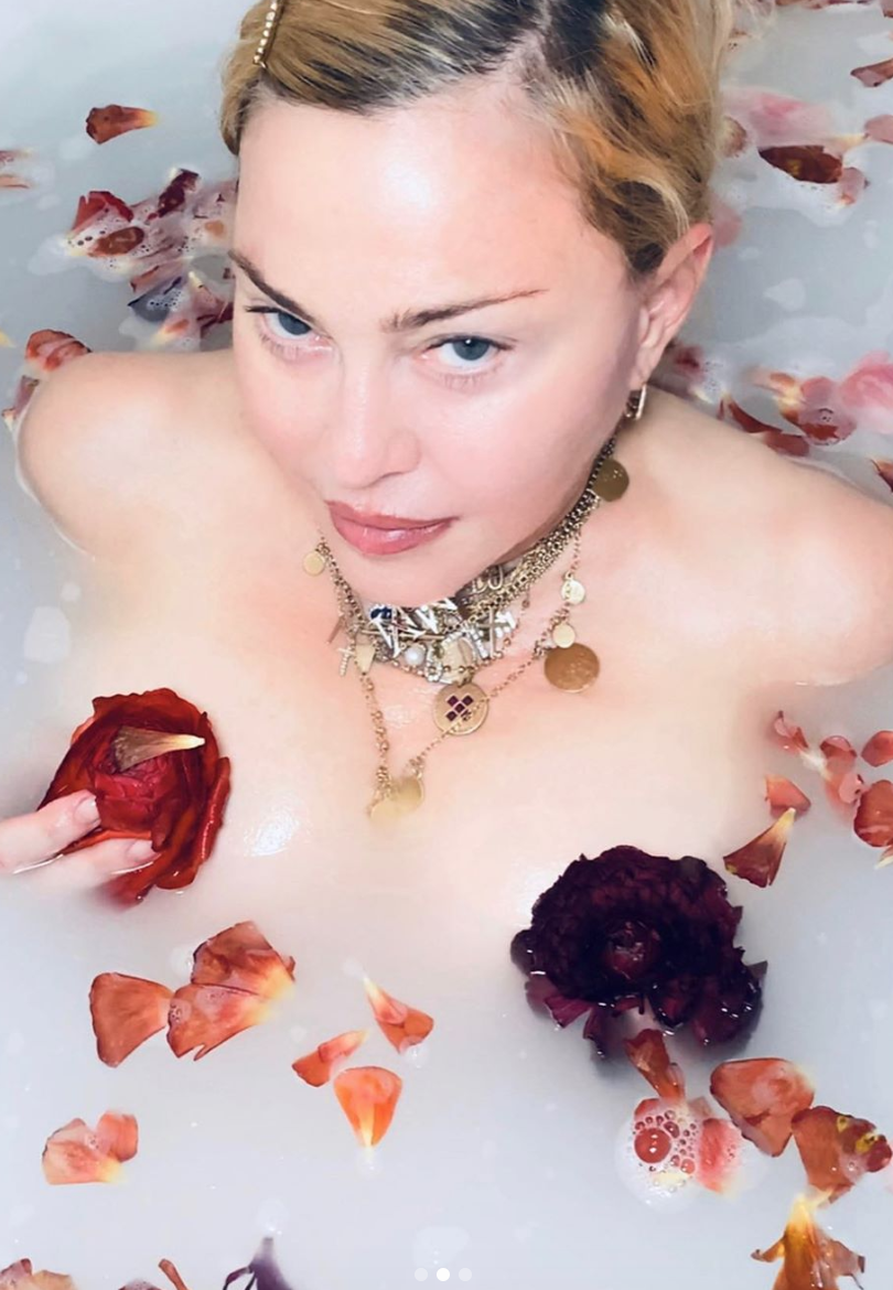 Regardless of whether or not it was Mother’s Day in England on March 22, and maybe Madonna just wanted to treat herself, as a matriarch of a six-large brood, to a soothing bath, it doesn’t change the tone deafness of her most recent “musing” on coronavirus, or what she so elegantly refers to as its more sci-fi name: COVID-19. Yet another in a series of quarantine videos that primarily feature her doing her Madame X on typewriter gambit, she sits in her decadent rose petal-filled bath to tell us: “That’s the thing about COVID-19, it doesn’t care about how rich you are, how famous you are, how funny you are, how smart you are, where you live, how old you are, what amazing stories you can tell. It’s the great equalizer. And what’s terrible about it is what’s great about it. What’s terrible about it is it’s made us all equal in many ways, and what’s wonderful about it is that it’s made us all equal in many ways. We’re all in the same boat, and if the ship goes down, we’re all going down together.”