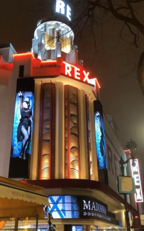 Noticeably missing from the show, however, was Madonna’s usual brand of sexual bawdiness. Save for a few instances of being felt up by Dick Tracy-esque men in trench coats during “I Don’t Search I Find,” it seemed as though she had either toned it down for the sake of her physical health or out of respect to her backup dancer boyfriend, Ahlamalik Williams, the person most obviously affectionate toward her onstage, particularly during the fado segment of the show, featuring “Killers Who Are Partying,” “Crazy,” “La Isla Bonita” and “Medellín” (conceptually unchanged from the first time M performed it at the Billboard Music Awards). Although one of the seemingly simpler performances of the show, “Extreme Occident” is among the most poignant as Madonna and a pair of dancers ride upon a slew of staircases (which Madonna mentioned were not very compatible with the Grand Rex’s small stage) that careen back and forth in a circular motion to iterate the primary aphorism of the song, “Life is a circle.” That it is, for Madonna inevitably keeps returning to Paris, the city that gave her a first real taste of what star treatment could be like, for it was where she once might have been made into a “disco tart” by the same producers responsible for Patrick Hernandez, a France-born one-hit wonder of the genre that M was selected to tour with in Paris circa 1979. She was even furnished with a place to live on the Boulevard de Courcelles across from Parc Monceau.
