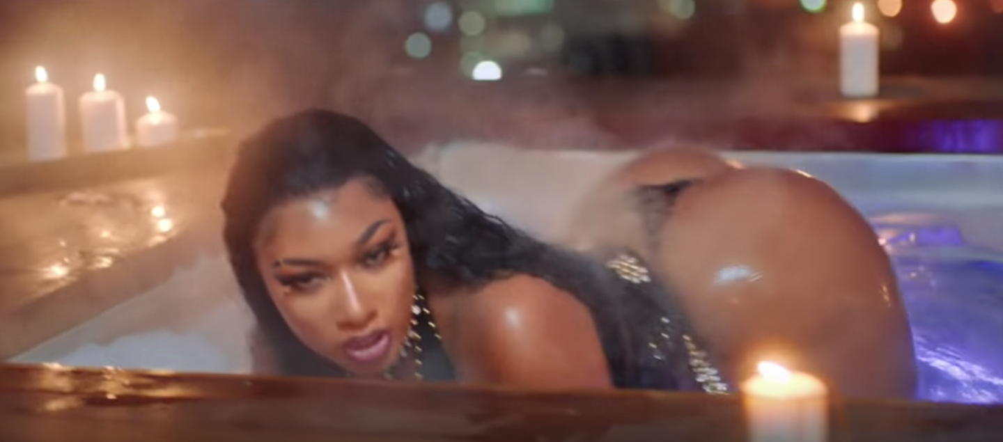 Fulfilling all of her goals and desires by sheer virtue of being the very descriptor men once tried to use as a tool to brainwash women into thinking they ought to be meeker. But as Madonna once said, “I’m tough, I’m ambitious, and I know exactly what I want. If that makes me a bitch, okay.” And very okay with it Megan Thee Stallion is, indeed. In fact, there are moments when it’s difficult to imagine that she could be feelin’ anyone–least of all a dude–more than herself. This much is apparent in the hot tub she takes it upon herself to relax in. Overlooking the cityscape, Megan Thee Stallion is moved only by the gyrations of her own ass while she twerks, declaring, “It’s 2020, I ain’t finna argue ‘bout twerkin’.” And, presumably, its undeniable value to this thing called American culture.