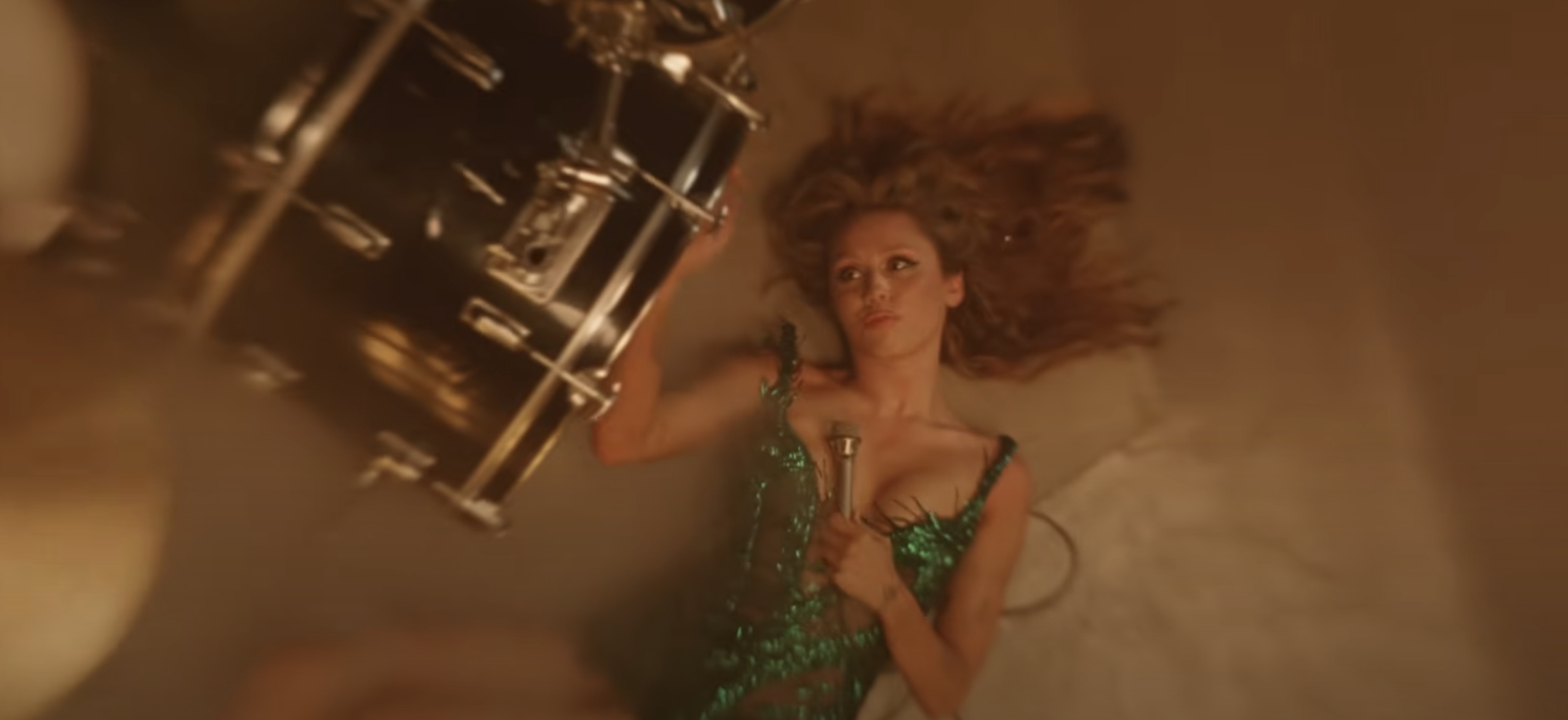 Because of that still common assumption, most people live their life with caution, never doing the things they would if they knew/accepted that the end was nigh. So it is that Cyrus urges her loved one, “Ooh let’s go to Paris/I don’t care if we get lost in the scene/Paint the city like Picasso would’ve done in his dreams/Do all the things that we were way too terrified of before.” This declared as she writhes around (Madonna, “Like a Virgin”-style)/generally flexes in her couture near the drum set that dominates the backdrop of the video.