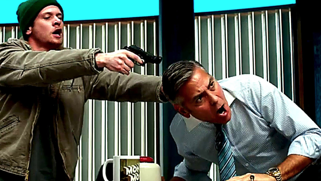 After Lee claimed investing in Ibis was “safer than a savings account,” the company’s stock summarily plummeted due to, as stated vehemently by every spokesperson for the company, a technical “glitch” in the algorithm. But like all post-1999 movies involving Julia Roberts and George Clooney, there is some sort of political foul play afoot. Some sort of rigged game waiting to be exposed. And the person to do that exposing is everyman Kyle Budwell (Jack O’Connell, sort of an Ethan Hawke type), one of countless shareholders who lost a piece of the $800 million pie that went “poof” into the air because of the so-called glitch. But unlike the other shareholders, Kyle has chosen to be the only one “here with a gun” to seek recompense of some kind for all. He knows, however, that said recompense cannot come in the form of tangible payment. No, what he seeks is a level of justice that would prove far more satisfying: cutting off one of the most important tentacles in the giant octopus called Wall Street, the ultimate synecdoche for corporate America and the insensitive pricks who run it. That tentacle, in this case, is Lee, who can’t even compel his viewers to buy up the stock again as his life hangs in the balance because, as Kyle puts it, “Even you don’t buy your own bullshit.” With the realization that he’s easily one of the most hated men in America (of which there are so many), Lee begins to question the lies he’s readily swallowed for the sake of being a pleasing lackey, awakened to his easy and comfortable blindness with a homemade bomb now strapped to his chest as Kyle screams, “You just sit there behind their little fucking desk, like their little fucking puppet, buying into their bullshit instead of trying to figure out what really happened.” The thing is, Lee isn’t the only person complacent about readily receiving the spoon-fed lies of those that are in control. Sure, Lee’s viewers might “casually” question the reasoning behind failed investments with a wink and a nod, but, at the end of the day, they’re all going to go on with their lives excusing away the pain of financial loss with the belief that they were born into a certain station in life that can’t be altered–despite the theoretical tenets of capitalism insisting otherwise.