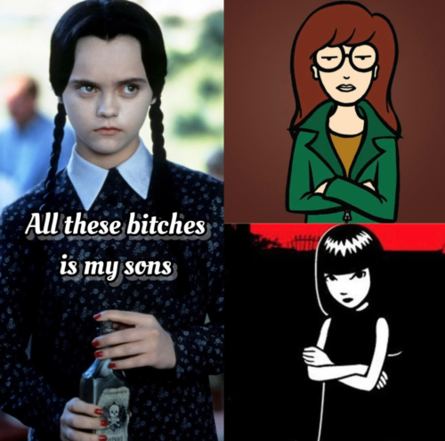 When Daria is forced to give him a piece of her mind upon seeing him obstructing access to her locker, Tommy insults her back with the assessment, “You’re one of those misery chicks. Always moping about what a cruel world it is. Making a big deal about it so people won’t notice you’re a loser.” This is the crux of what a “grim girl” a.k.a. “misery chick” must contend with: easily scandalized normies lashing out at the slightest shattering of their worldview. And it was a prototype that Wednesday Addams laid the groundwork for.