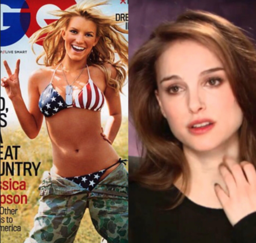 The metaphor for this virgin/vixen paradigm herself, Jessica Simpson, instantly came out against this blatantly passive aggressive comment with the response, “I was disappointed this morning when I read that I ‘confused’ you by wearing a bikini in a published photo taken of me when I was still a virgin in 1999. As public figures, we both know our image is not totally in our control at all times, and that the industry we work in often tries to define us and box us in. However, I was taught to be myself and honor the different ways all women express themselves, which is why I believed then—and believe now—that being sexy in a bikini and being proud of my body are not synonymous with having sex.” In short, Simpson, constantly deemed “the ditzy blonde,” put the frequently high and mighty Portman in her place, which rarely happens when considering she is one of the few actresses still somehow able to get away with classic displays of white feminism while others are not.