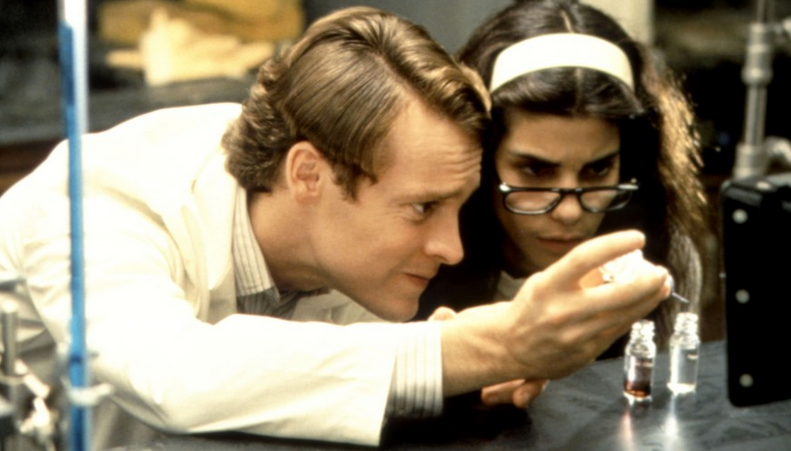 Centered around two intelligent (read: nerdy) biochemists named Diana Farrow (Sandra Bullock) and Paul Matthews (Tate Donovan) who both have a consistent drought in their love lives, Dale Laurer (who wrote, produced and directed the film, and, side note: also wrote and produced My Cousin Vinny, which would come out the same year), is extremely deliberate in laying forth the hetero stipulations of Love Potion No. 8 (Love Potion No. 9 comes in later). This potion is introduced at the very beginning of the film when Paul and his friends go to see a fortune teller named Madame Ruth (Anne Bancroft, the best part about the movie). Immediately detecting how lonely Paul is, Madame Ruth prescribes him Love Potion No. 8, which she specifically states, in its undiluted form, will make any woman who hears his voice fall in love with him, but any man who hears it be repelled by him. Yet wouldn’t this be a bit limiting if, say, Paul was into dudes (which it kind of seems like he is)? Two nerds who strike gold with Love Potion No. 8