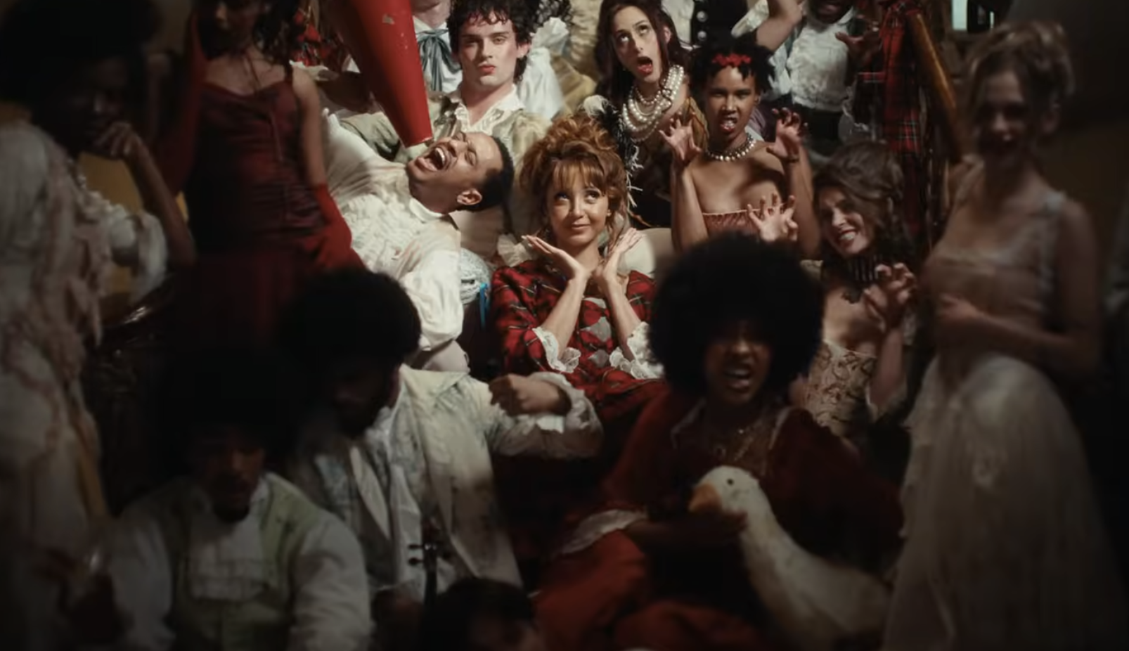 As Rutherford starts to intercut those scenes with PinkPantheress (appropriately outfitted in a costume of the era she wishes to channel), we see her, at one point, in a boudoir with a four-poster bed, surrounded by other people (after all, it wasn’t uncommon, as a royal, to be observed by others while boning). This is followed by more intercut scenes of general merrymaking (think: the night of Marie Antoinette’s eighteenth birthday party [soundtracked to the tune of New Order’s “Ceremony”] in the movie of the same name). After which PinkPantheress goes into full-on “TikTok dance” mode with her slew of ladies in waiting. And, speaking of waiting, that’s a big theme in the song, as it was during Regency-era existence (particularly for women—just ask Elizabeth Bennett). Thus, PinkPantheress sings, “I waited all this time, now I guess this time I can hold ya/A million things I can say, but baby, I’ll wait some longer.”