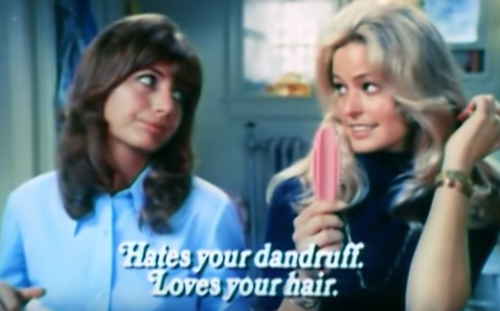 Resuscitated of late even before Penny Marshall’s death on December 17th thanks to the joys of Instagram as the new Tumblr, a relic of a 70s commercial for Head & Shoulders has reminded us all just how much of a crime it was for a girl to be “homely” back in the day (whereas now, let’s be honest, it’s more celebrated than attractiveness). For “homely” was the precise word used to describe Marshall’s stand-in as the crew lit the set for the presently studied for its “irony” value commercial. That’s right, a crew member decided to label one of the stand-ins “Homely Girl” and the other “Pretty Girl.” “Pretty Girl,” naturally serving to represent Farrah Fawcett.