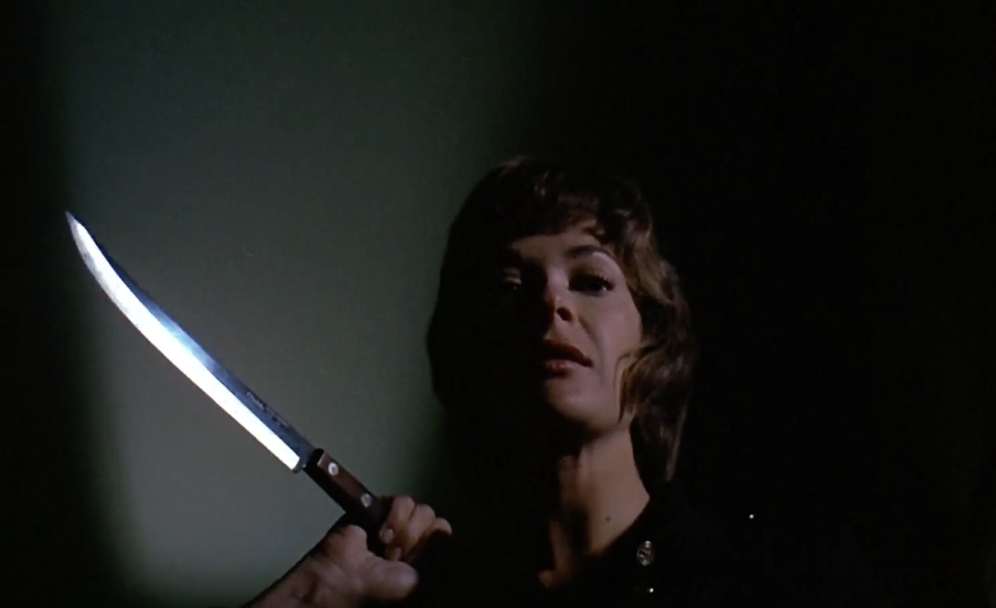 Similar to Alex’s outrage about Dan just deciding to “throw her away” after one fuck (even though both parties agreed it couldn’t be anything more), Evelyn cry-yells at Dave, “Why are you playing these games? Why are you pretending you don’t love me?” Dave snaps back, “You haven’t got the vaguest idea what love is. We don’t even know each other.” Dan feels trapped in the same fucked-up scenario wherein he’s effectively stuck with a woman who got too drunk off the oxytocin release while they had sex. Both women’s vacillation between the “tactics” of sobbing/sadness displays and verbal venom unleashed upon the object of their so-called affection are also consistent throughout the films. Evelyn even sets Alex up with the attention-grabbing emotional manipulation of slitting her wrists when Dave tries, yet again, to rid himself of her. Though, “at least,” she waits a little more than one fuck to start displaying that kind of behavior. Alex, not so much, delving right into her Madama Butterfly behavior the second she senses Dan is really leaving and can’t be talked out of it again with more faux jovial convincing. Just as Misty can’t be bothered with pretending to play the “laid-back dame” anymore either. Which, one supposes, is the only shared trait between crazy women who live in California and New York, respectively.
