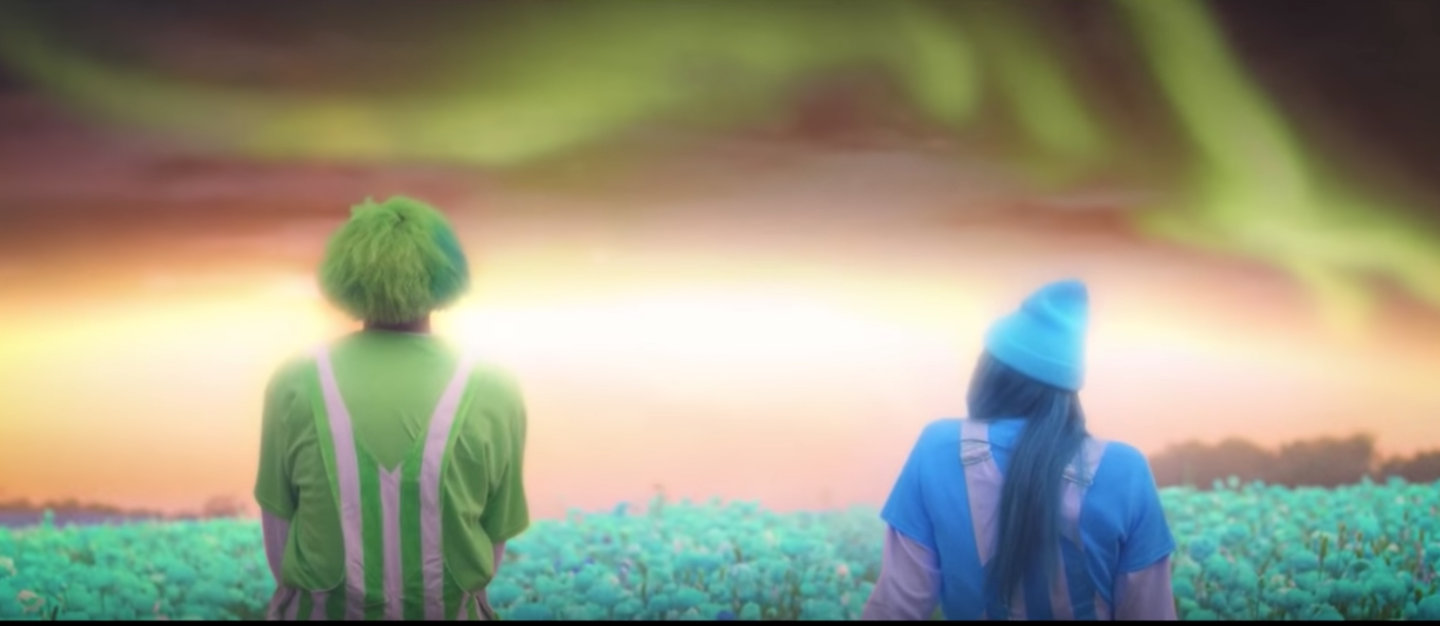 With he green-haired and she blue-haired, there is also un certain Seussian quality to the entire look (something like Thing 1 and Thing 2). Yet there are some instances grounded in reality, like a scene of Eilish alone on a mattress on the floor, gazing out the window as she thinks, “It feels like yesterday was a year ago.” Maybe in the laws of the realm of where this video’s setting exists, it was. For when she’s wrapped in that watery sheet that looks like an update on the style of Busta Rhymes and Janet Jackson’s “What’s It Gonna Be?!” video, one can’t tell the difference anymore between Eilish’s dream and nightmare, the exact effect she was going for. Yet the soothing presence of her green-hued Tweedle-Dum, who reaches out to take her hand just when she feels at her loneliest, is enough to make the lack of distinction not matter. For there is comfort in a constant presence. A brother (both literal and metaphorical) in musical arms.