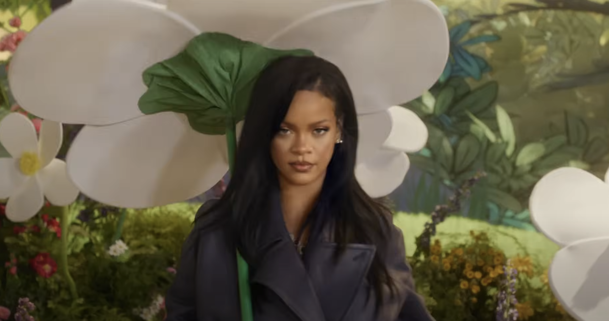At the end of the video, Smurfette blows a kiss that shoots out the same kind of cartoonish white flower (akin to a daisy) Rihanna was using as her umbrella at the beginning. That flower transitioning us back to Rihanna walking away from the mushroom house with the same kind of “tee-hee-hee” look on her face that Madonna had while running out of the hotel room in the “Justify My Love” video. The difference being, needless to say, that Madonna’s devious expression was actually warranted. Here, the only “transgressive” thing going on is Rihanna continuing to bend over so fully to corporate interpretations of “art.”