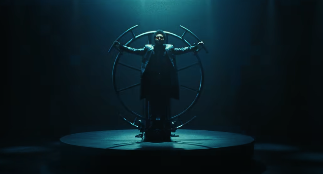 Despite being “back,” the club is no longer quite how it was, clientele-wise. Instead of designer-clad, thin bias, it’s all hooded figures bobbing up and down to the rhythm of the song (could one of them be the god-like presence that is Carrey throughout Dawn FM?). Some of them, however, are “kind” enough to escort The Weeknd to the end of the room, where he’ll be placed on a circular rack (it’s all very Chilling Adventures of Sabrina meets Charmed).