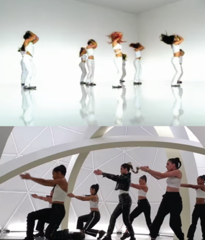 Nor did they in conceptualizing the video (yet another Apple product promo in celebration of iPhone), also directed by Sophie Muller–just as “Lose You To Love Me” was–in a move that vastly under uses her talent. With the same oval-shaped sets and incandescent hues, the video draws immediate parallels to “Come On Over Baby (All I Want Is You).” Especially when adding the extra ingredient of an entirely choreography-reliant “narrative.” At the very least, however, the video is more than an entire minute shorter than Aguilera’s (for attention spans among the pop music audience–and beyond–have waned that much in almost two decades). Which means there’s far less opportunity for employing the fanfare of a sizable budget, as Aguilera did with her “people in boxes” and staircase scenes.