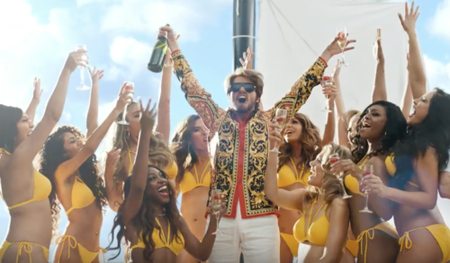 Soon after, “The Man,” “gets off” at the fictional 13th Street Station (perhaps even Taylor Swift didn’t have the clout to shut down Union Square) to relieve himself on a wall complete with just the type of “graffiti” one would expect to come out of Swift’s head, along with a poster next to “The Man” that bills him as Mr. Americana (likely what Swift calls Joe Alwyn behind closed doors). Yes, Swift, we get it. We know it’s you behind the disguise, no need to drop any clues. Least of all pissing out the words “The Man” in a glittery font. From there, we leave the realm of the plebes for a yacht inspired by Leonardo DiCaprio’s real life and his portrayal of Jordan Belfort in The Wolf of Wall Street. Fittingly, he daubs his hair with some champagne as though it’s gel before choosing just one of the many model types on his yacht to sleep with. Leaving her behind the next morning, he walks through the hallway to a sea of disjointed from their bodies hands all waiting to offer him high fives apropos of nothing other than being a garden variety douche.