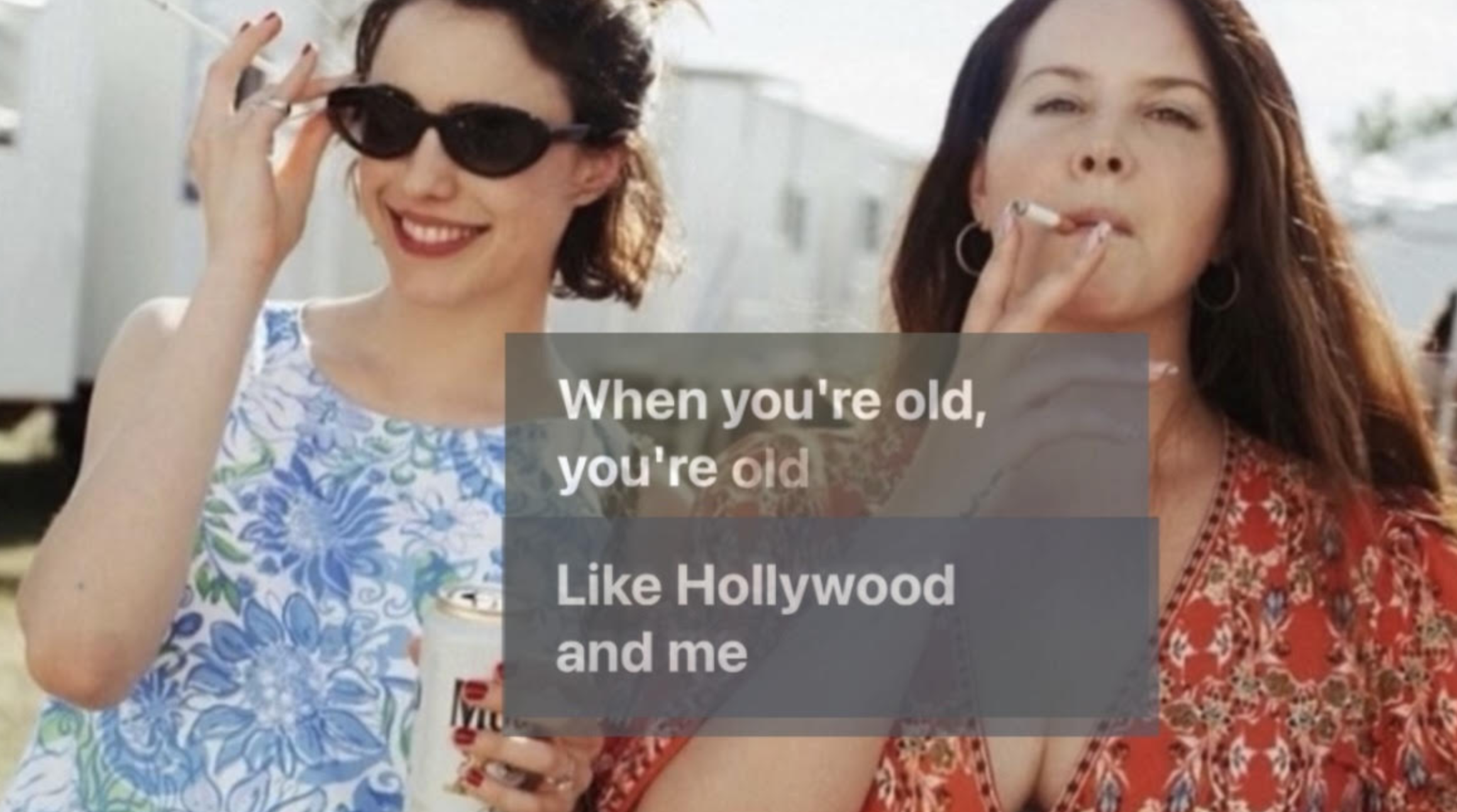 While Del Rey may have only been wielding a reference to being “old” as a poetic way to express that, like getting old, falling in love is unstoppable, uncontrollable (even though that doesn’t really apply at all to getting old anymore, what with all the treatments and topicals available to those with the means [like Qualley and Del Rey]), it still sounds genuine. As though she really believes that, at thirty-seven (the age she was when she wrote this song), she’s “ancient.” And, if The Substance reemphasized anything about what it means to be a woman in today’s culture, it’s just that. Indeed, by skewed Gen Z standards of what constitutes being “young,” Del Rey was already “old” when she first drew international attention with “Video Games” at the end of 2011. The year LDR turned twenty-six. In fact, it’s almost unfathomable that Gen Z could “deign” to listen or relate to Del Rey at all considering how “aged” she is according to their dictums.