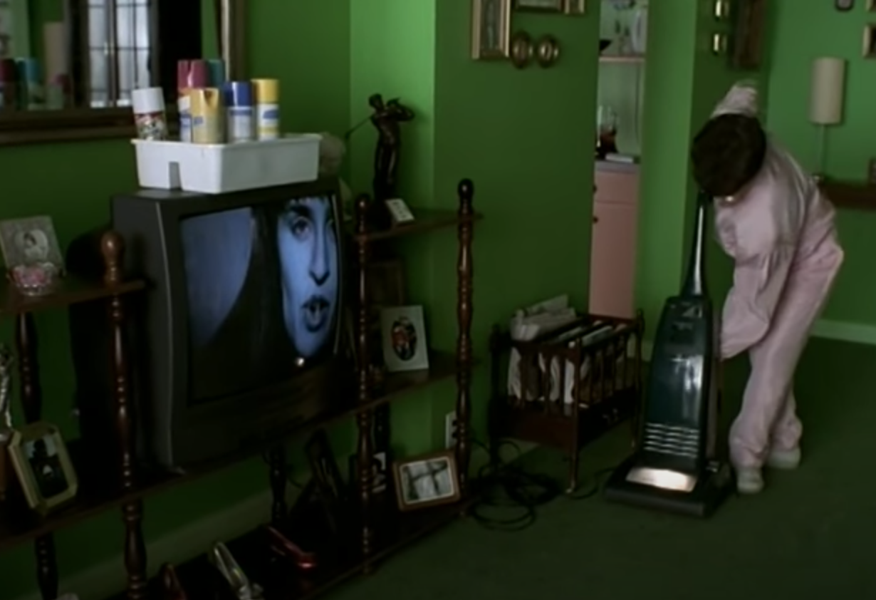 As she proceeds to powder her carpet with some needless pre-treating accoutrement (the 90s being filled with such products) before vacuuming, the awkward tracking shot begins—never quite focusing on Mother’s face as she goes about her domestic business while Bonham goes on speaking. And that’s likely the point: to undercuttingly highlight Mother’s total absenteeism and disinterest. Her lack of awareness—nay, a lack of wanting to be aware—of the true state of her daughter’s health and well-being. “The less I know, the better,” as it is said. Along with, “What you don’t know can’t hurt you.” And Mother would surely be affected by knowing the grim realities of her baby girl’s day-to-day existence.