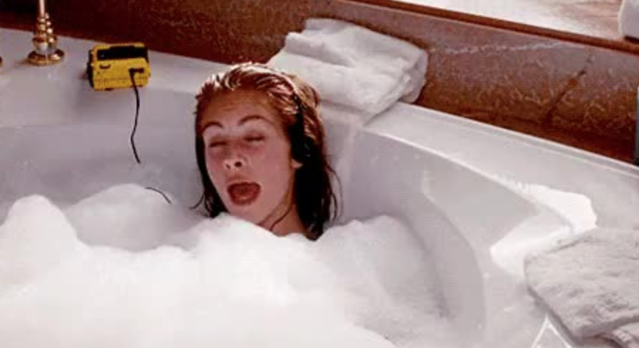 Unmoved, Edward insists, “Vivian, I will let you go.” All an apparent part of his reverse psychology schemes. In the end, of course, Pretty Woman very carefully follows the rom-com pattern, but oh to imagine a deviation in which Vivian does end up returning to that bathtub to kill herself as originally and underlying premeditated. And rather than Roxette’s “It Must Have Been Love” playing in the chauffeured car before she reunites with Edward, it instead blares on the headphones as she surrenders to a demise that frees her from financial dependence on the whims of a man’s penis.